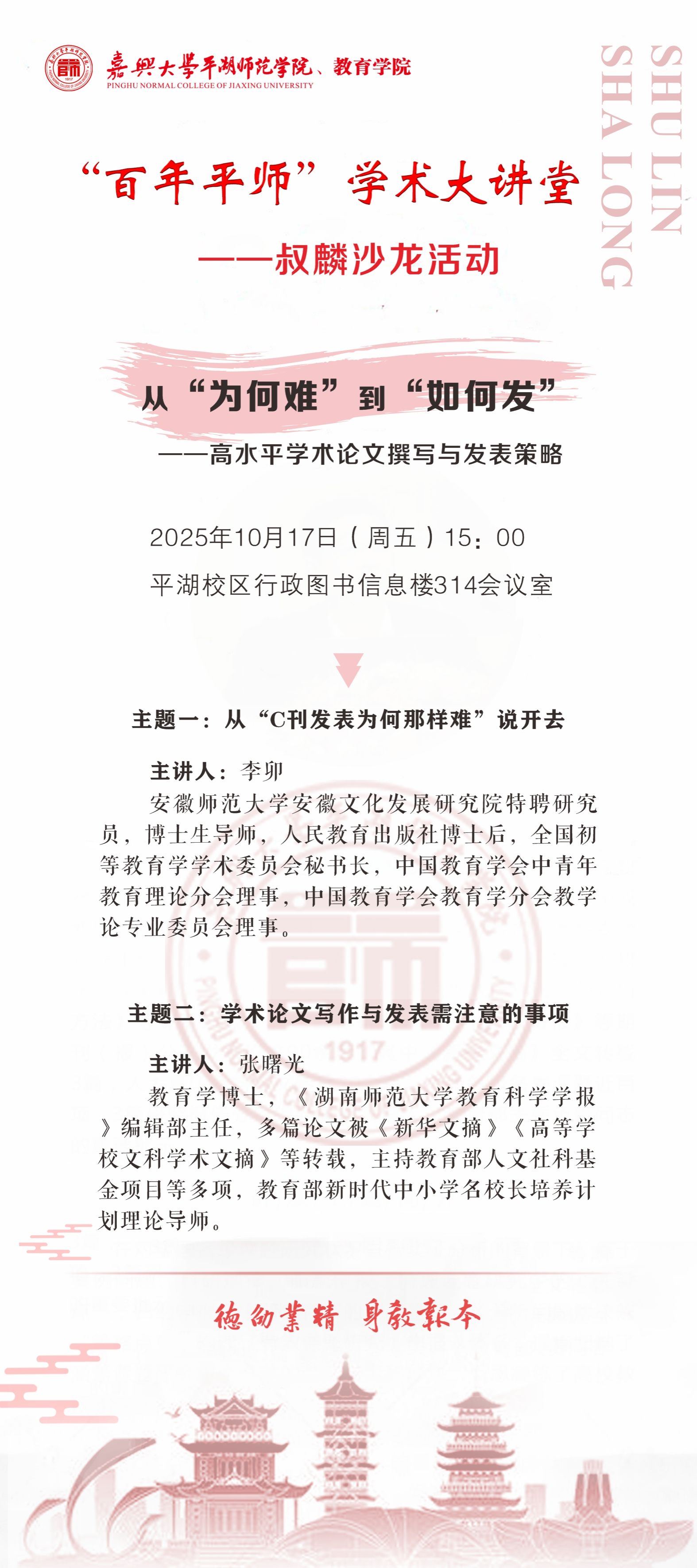 “百年平师”学术大讲堂——叔麟沙龙活动预告:从“为何难”到“如何发” ——高水平学术论文撰写与发表策略