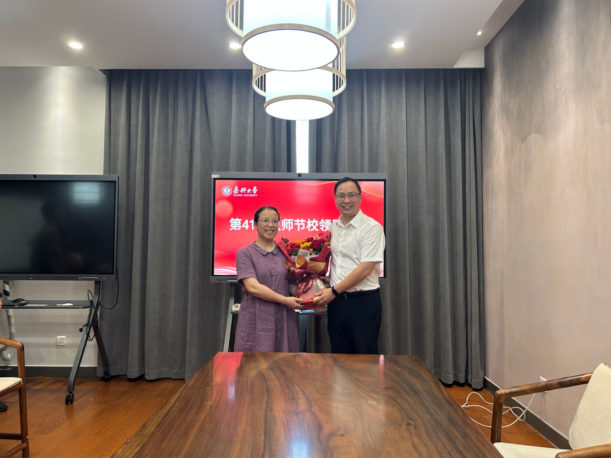 9月8日下午,在全国第41个教师节来临之际,校党委委员、副校长王立玮慰问学院教师代表,并向学院教师致以节日问候与诚挚祝福。学院党政领导班子成员、教师代表参加座谈会。