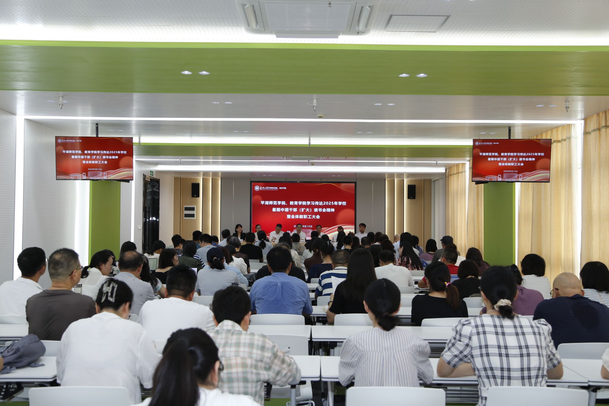 9月13日上午,学院学习传达2025年学校暑期中层干部(扩大)读书会精神暨全体教职工大会在平湖校区行政楼四楼会议室(叔麟讲堂)顺利召开。校党委委员、副校长王立玮出席会议,学院党委书记冯伟芳主持会议。